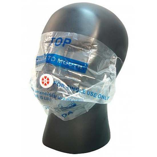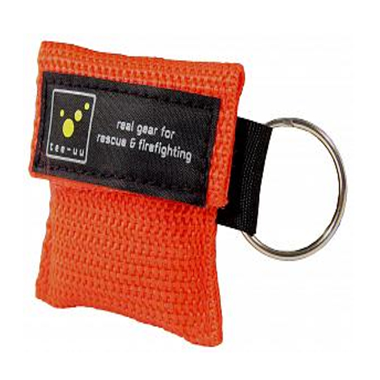Maska za kardiopulmonalnu reanimaciju za uporabu pri pomaganju kod disanja. Pakirana u maloj vrećici s ključnim prstenom.